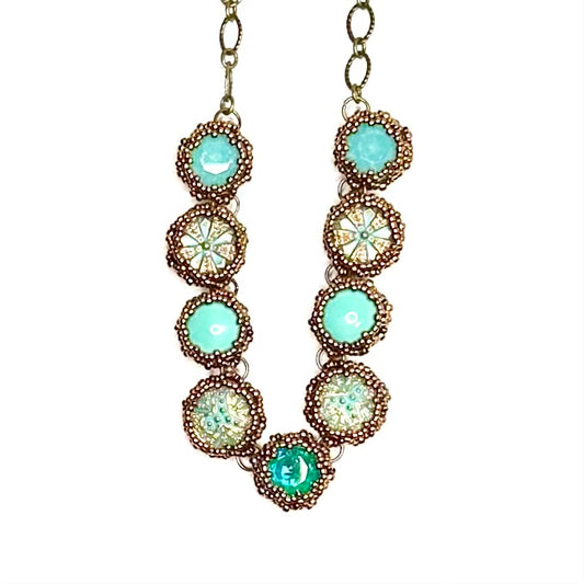 Bezel Set 9 Stone Necklace | Green Jade