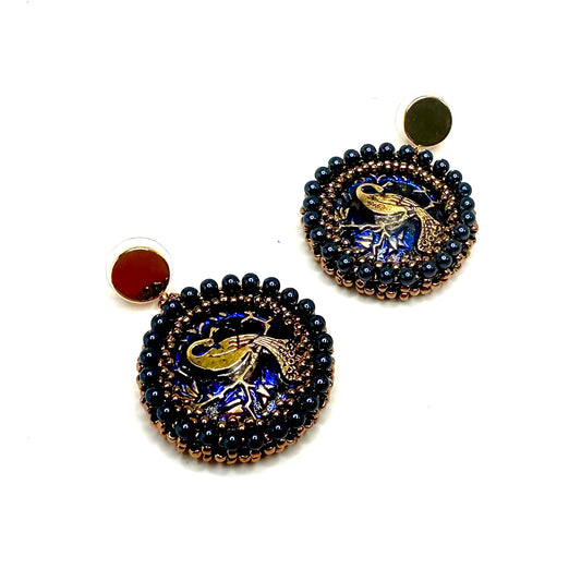 Czech Button Earrings | Peacock Dark Blue/Purple