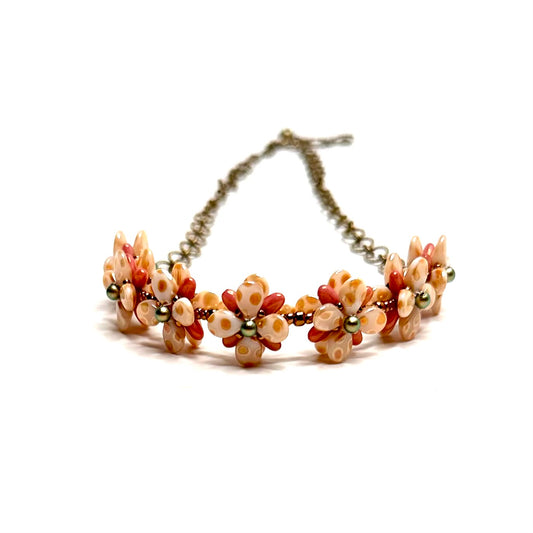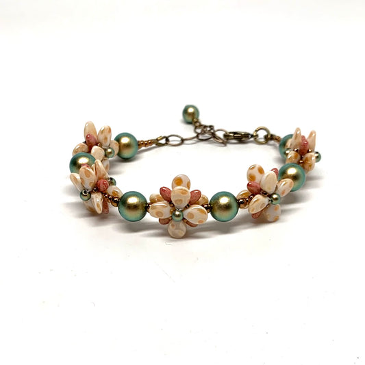 Flores Bracelet - Picasso Mix Flowers with Gold Pearls