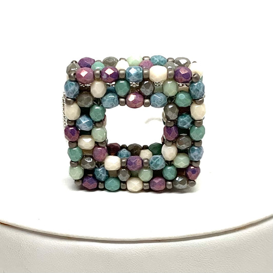 Vintage Style Czech Button Earring | Art Nouveau Floral