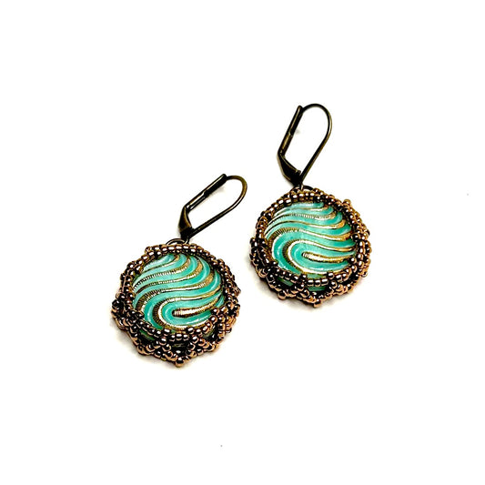 Vintage Czech Button Earring | Wave Pattern | Assorted Colors