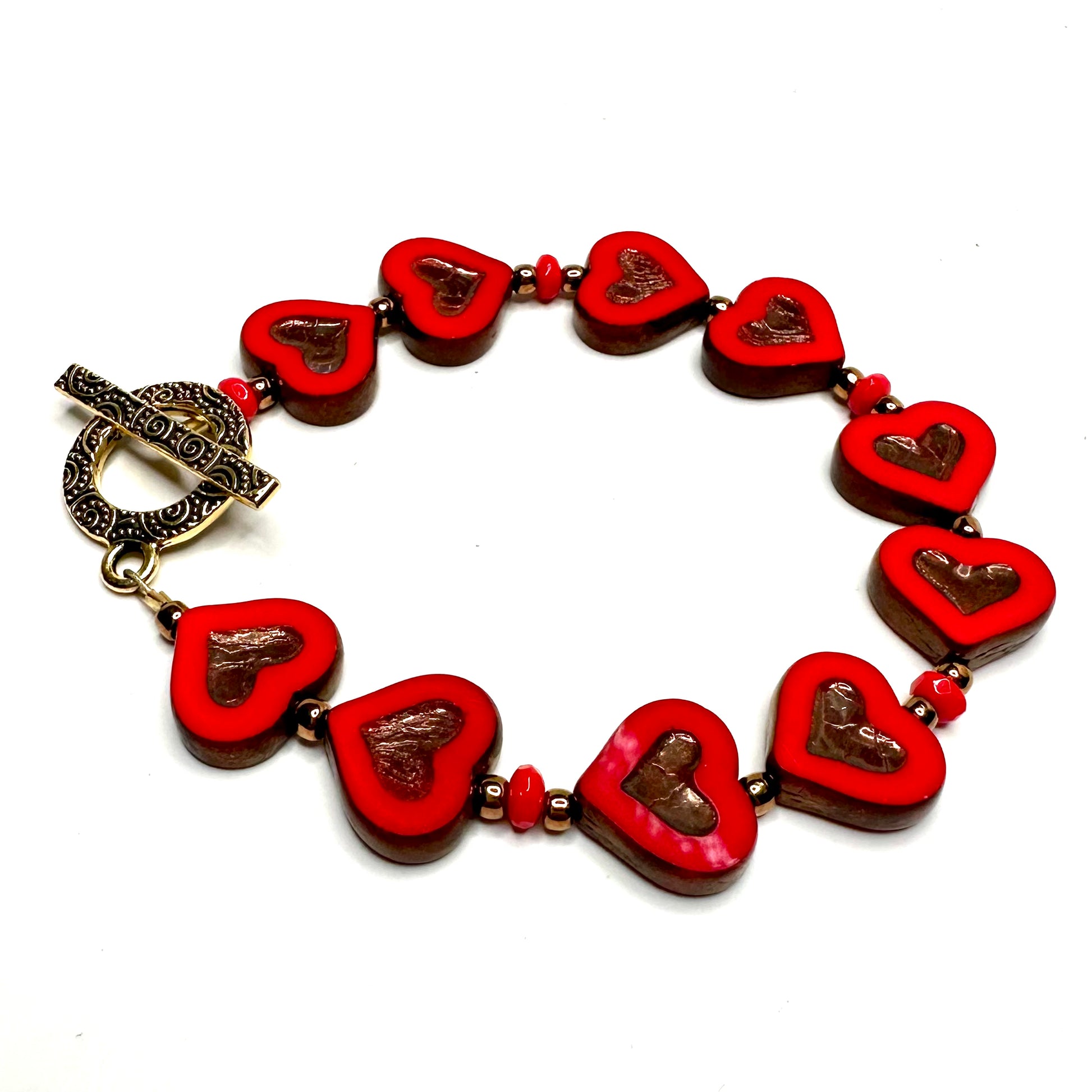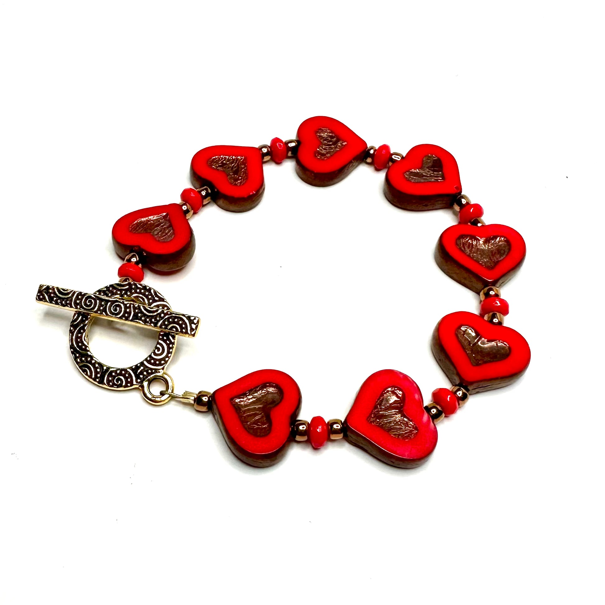 The bracelet is finish with a beautiful stamped toggle clasp in antiqued gold plate.